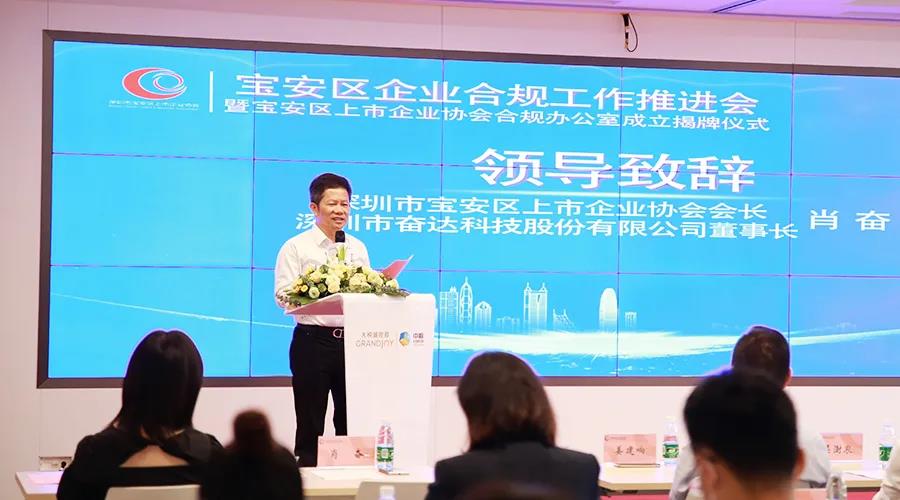 8月3日上午,宝安区企业合规工作推进会暨宝安区上市企业协会合规办公室揭牌仪式于中粮创芯研发中心举行。宝安区企业合规建设委员会、宝安区人民检察院、深圳市宝安区上市企业协会等领导代表就企业合规工作推进事项先后发表致辞。